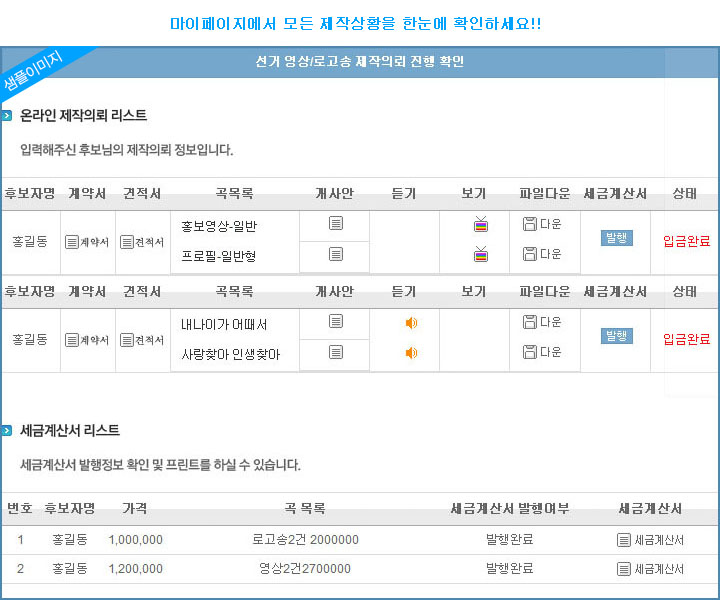 제작의뢰시 입력하신 후보자명과 비밀번호를 입력하세요.